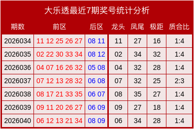 后区分析:近7期后区奖号质合比为3:11,合数走势较热,上期开出后区号码为08、09,属于合合数,本期分析后区号码为01、08。
